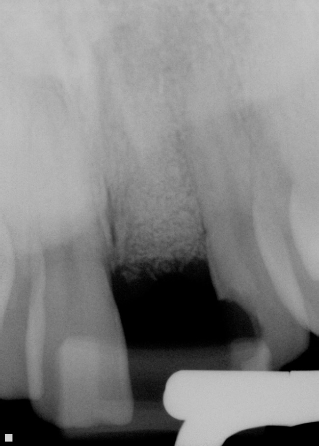 După debridare, dehiscenţele sau defectele prin fenestraţie s-au tratat din partea laterală a locului de extracţie, utilizând o membrană de colagen resorbabilă, pentru a susţine materialul de grefare şi pentru a preveni proliferarea spre interior a ţesutului moale. DBBM a fost apoi aplicat în alveola postextracţională până la nivelul crestei alveolare. S-a utilizat un burete hemostatic de colagen pentru a forma un acoperiş coronar deasupra alveolei. Pentru a securiza buretele de colagen, s-au folosit suturi neresorbabile cromice 4-0. Ocazional, s-a utilizat o membrană de colagen resorbabilă ca şi acoperire coronară în locul buretelui hemostatic. După grefarea alveolei postextracţionale, toate cazurile au fost restaurate provizoriu, cel mai frecvent cu o proteză parţială temporară. Cazurile selectate au fost prevăzute cu o restaurare provizorie cimentată sau un dispozitiv Essix™.