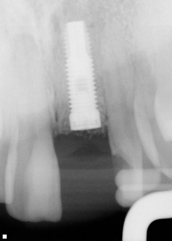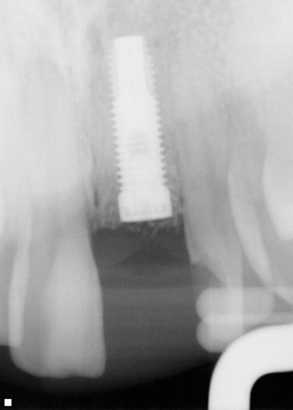 Incidenţa osteointegrării implantelor inserate imediat este crescută şi se consideră predictibilă.8 Totuşi, studiile umane şi experimentale recente au demonstrat în mod decisiv că inserarea unui implant într-o alveolă postextracţională proaspătă nu previne pierderea osoasă.9-11 Resorbţia osoasă orizontală instalată după inserţia unui implant într-o alveolă postextracţională proaspătă s-a dovedit a fi similară cu cea observată în cazul alveolelor postextracţionale fără inserţie de implante. Botticelli şi colab. au demonstrat faptul că atunci când se inserau implante în alveole postextracţionale proaspete, resorbţia orizontală (de la exteriorul peretelui vestibular către suprafaţa implantului) a atins 56% (1,9mm) pe versantul vestibular şi 30% (0,8mm) pe cel lingual.9 În cadrul studiilor experimentale, lipsa marginală prezentă la momentul inserţiei imediate a implantului s-a rezolvat la reintervenţia chirurgicală.9,10 Totuşi, era evidentă o oarecare pierdere osoasă verticală. Pierderea osoasă verticală sau osul insuficient vestibular de suprafaţa implantului duce de multe ori la rezultate estetice compromise, incluzând o poziţie coborâtă a gingiei marginale, triunghiuri interdentare întunecate sau neregularităţi vestibulare de ţesut moale care pot necesita chirurgie corectoare suplimentară.