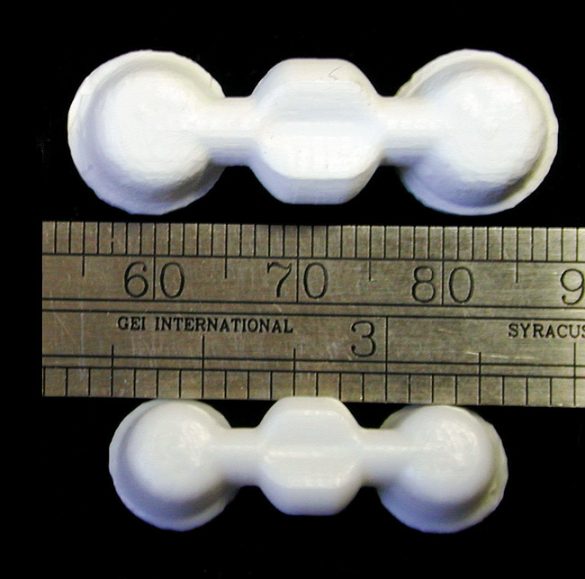 Zirconia cu densitate totală este extrem de dificil de prelucrat, fabricarea unui singur element necesitând până la două ore. De aceea, majoritatea restaurărilor cu schelete din zirconia sunt fabricate prin prelucrarea unui bloc de zirconia poroasă sau parţial arsă. Scheletul este frezat supradimensionat şi apoi ars de la aproximativ 1350°C până la 1500°C pentru condensarea totală a zirconiei, cu producerea unui material translucent şi a valorilor de rezistenţă cuprinse între 900-1200MPa.2,3 În cursul tranziţiei de la scheletul frezat la scheletul dens apare o contracţie semnificativă de sinterizare, cuprinsă în mod tipic între 20-30% (fig. 1). Temperaturile diferite de ardere se corelează cu dimensiunile particulelor pulberii din bloc — în general, cu cât dimensiunea iniţială este mai mică, cu atât este mai redusă temperatura de ardere. Majoritatea blocurilor au coduri de bare care transmite calculatorului densitatea blocului de frezare pentru a freza corespunzător scheletul supradimensionat. Arderea insuficientă sau exagerată poate afecta dimensiunea finală, porozitatea, proprietăţile mecanice şi adaptarea cristalului.