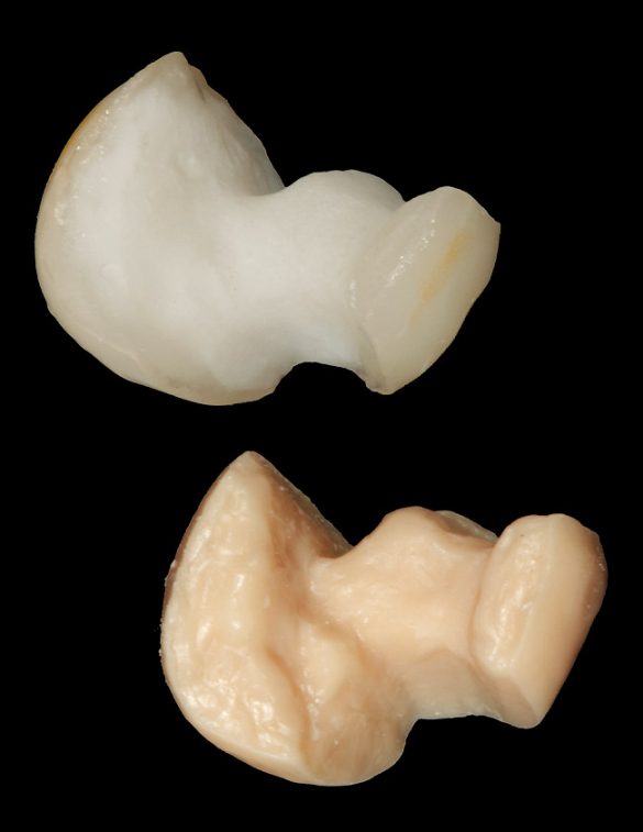Ceramicele s-au bucurat de o istorie bogată în stomatologie, de la coroana ceramică totală şi coroana de alumină lipsită de contracţie până la coroanele din ceramică de sticlă obţinute prin turnare.1-4 La începutul anilor 1990 s-au dezvoltat ceramicele de sticlă ranforsate cu leucit (leucite-reinforced glass ceramics, LRGC), care implicau cristale de leucit într-o matrice de sticlă amorfă. Particulele de leucit au crescut rezistenţa materialului prin limitarea propagării fisurilor. Aceste restaurări implicau tehnica turnării prin metoda cerii pierdute şi tehnologia de presare termică.5 În plus, abilitatea de a grava acid suprafaţa şi de a o ataşa adeziv la structura dentară a îmbunătăţit semnificativ predictibilitatea şi supravieţuirea acestor restaurări, în cazul cărora eforturile anterioare eşuau.6 Restaurările LRGC au trecut testul timpului şi au revoluţionat stomatologia estetică modernă.