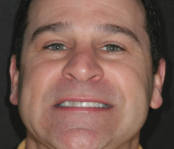 În cazul de faţă, preocuparea primordială manifestată de pacient era legată de aspectul estetic al zâmbetului său, nefiind însă conştient de necesitatea unui tratament adiţional. În cursul protocoalelor sistematice şi detaliate de diagnostic şi pronostic, pacientul a înţeles toate aspectele tratamentului necesar. Acest fapt a permis efectuarea unei terapii care a îmbunătăţit semnificativ atât sănătatea sa orală, cât şi longevitatea restauraţiilor protetice realizate, cu redarea zâmbetului dorit. (fig. 13, 14).