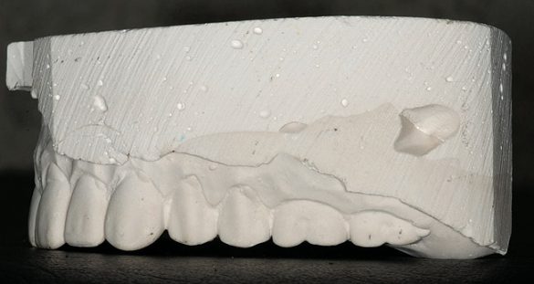 Odată ce pacientul a acceptat macheta de ceară, s-au confecţionat matrice siliconice ale machetei superioare şi inferioare. Aceste matrice sau şabloane se adaptau pe modelele master care conţineau analoagele fixe şi capturau întreaga porţiune vestibulară şi o parte a suprafeţelor ocluzale ale dinţilor.