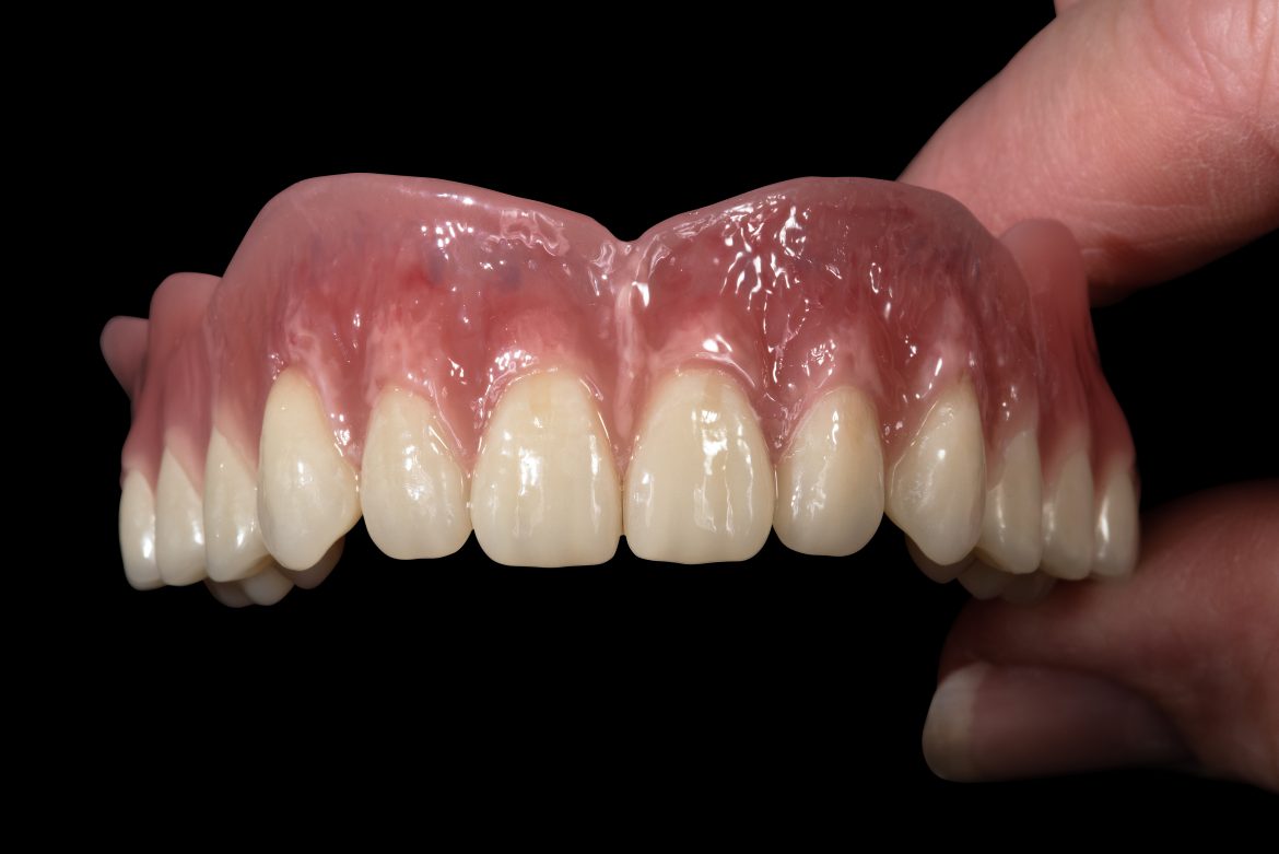 Totuși, până acum efectul cromatic caracteristic frenului labial, vaselor de sânge, crestelor alveolare și gingiei atașate sau neatașate au putut fi reproduse doar cu ajutorul măiestriei tehnicianului și a unei pensule. Aici intră în joc culorile de pictură fotopolimerizabile VITA AKZENT LC cu efectul lor cromatic multi-fațetat, transformând lamboul labial vestibular într-o pânză pentru pictură și creație.